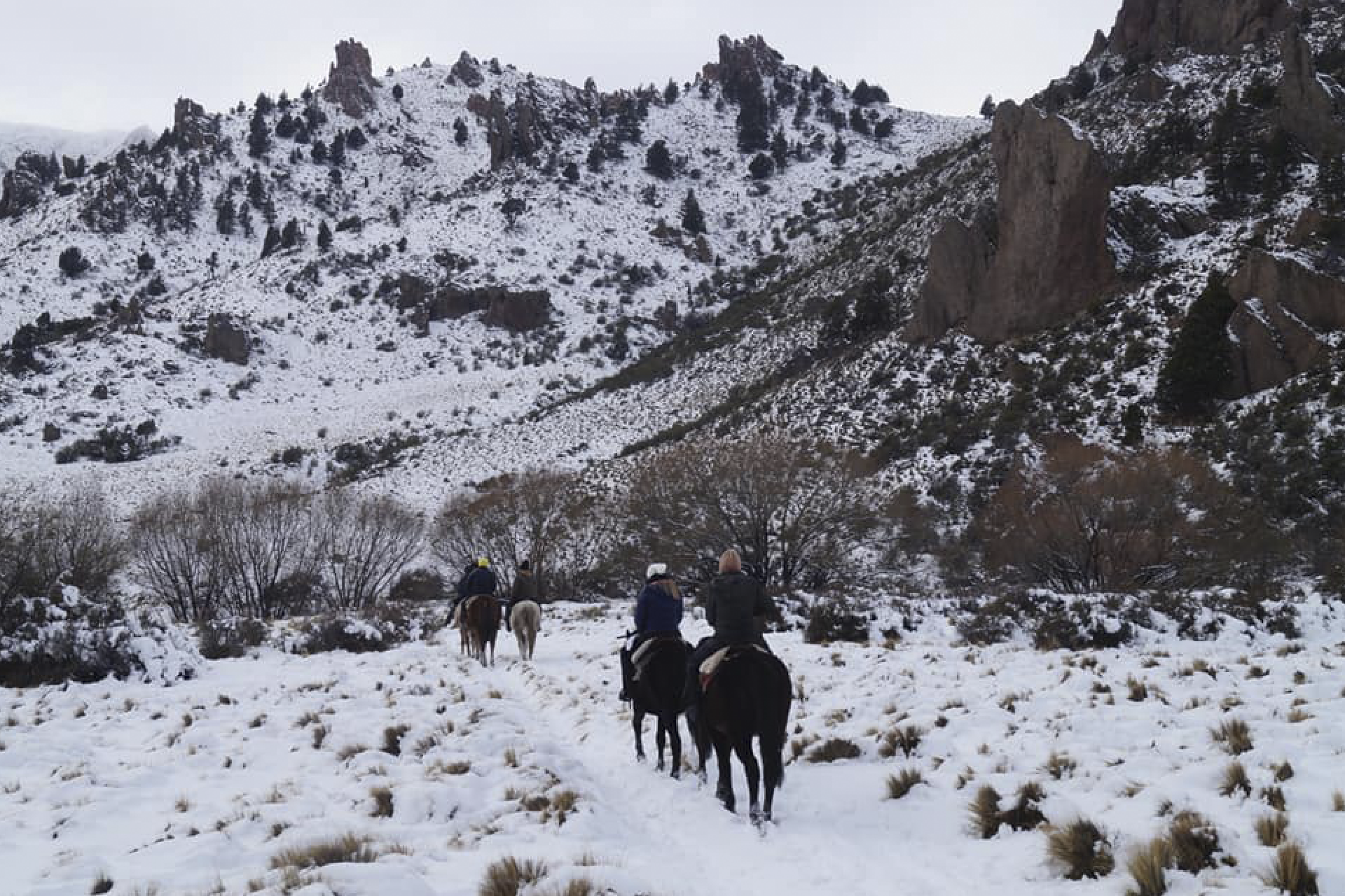 A 30km da cidade de Bariloche, com sentido à Leste. Somos recebidos em uma antiga escola rural conhecida como La Fragua. Devido a localização privilegiada considerada pré cordilheira, a cavalgada nos permite combinar o percurso com Bosque de Transição e Estepe Patagônica.